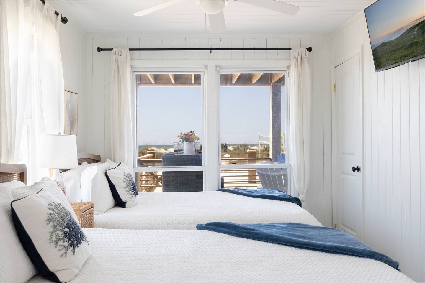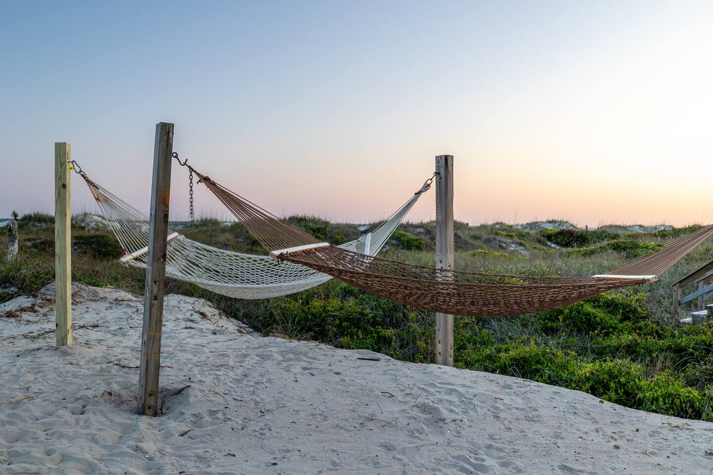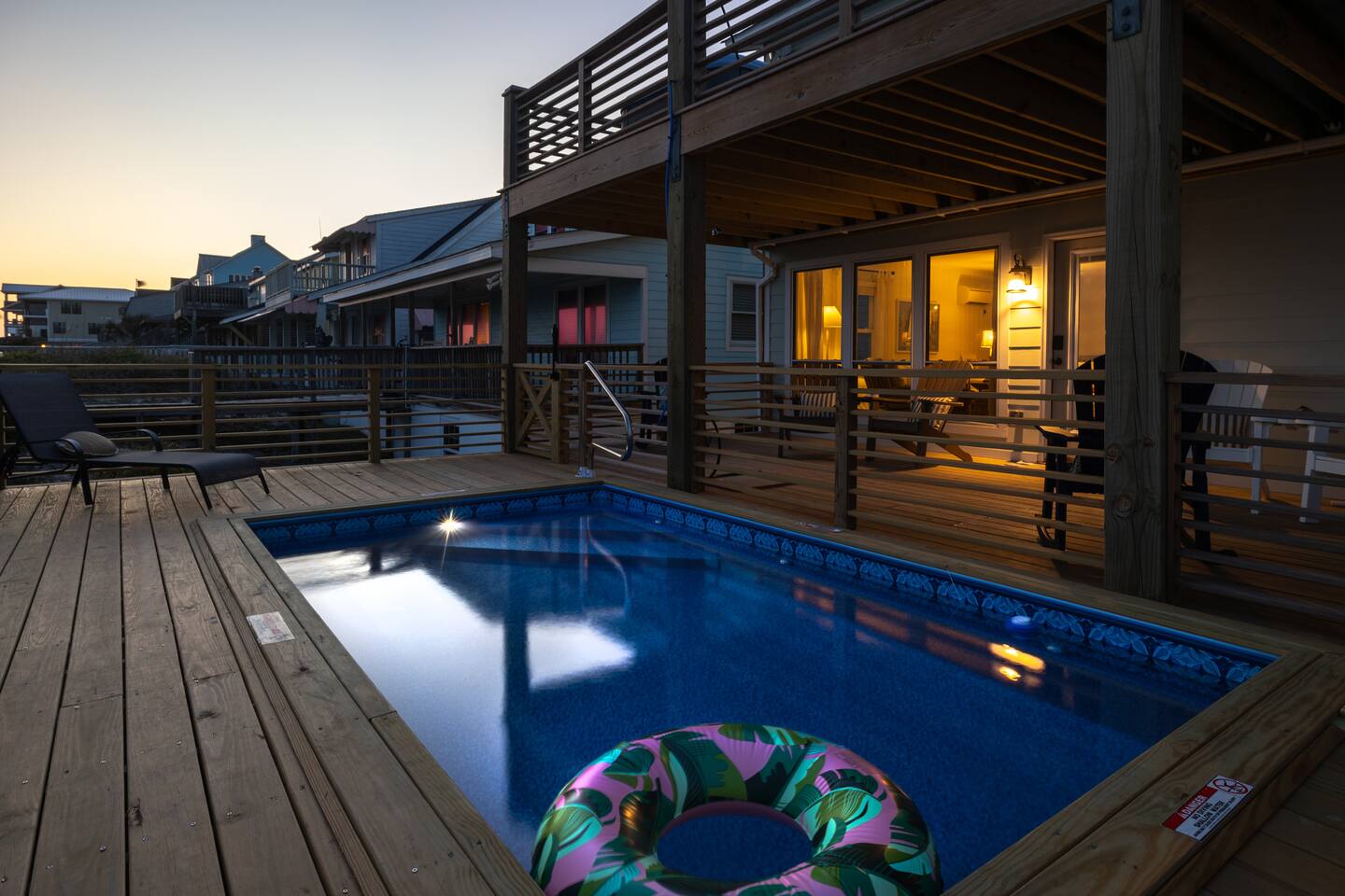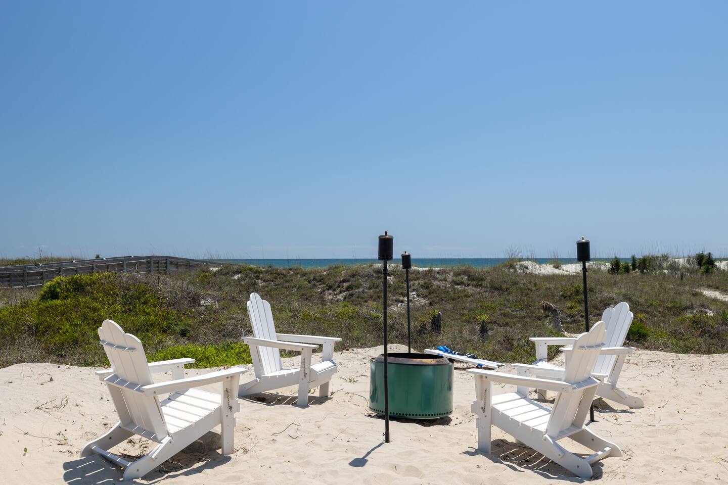 The inside of the house is just as beautiful as the outside, with an open concept main living floor plan, plenty of natural light, and incredible unobstructed Atlantic Ocean views from the two upper levels. We have remodeled (May 20, 2025) the bathrooms on the second (new more functional tub/surround) and third levels(adding bigger shower with expanded bathroom footprint) **Interior Features:** - **Open Concept Living:** Spacious main floor plan with abundant natural light - **Well-Equipped Kitchen:** Stainless steel appliances and ample counter space - **Spacious Bedrooms:** Comfortable rooms with plenty of storage - **Entertainment:** Flat screen Roku smart TVs throughout - **High-Speed Internet:** Fast and reliable Wi-Fi **Outdoor Features:** - **Hammock Garden:** Two luxurious hammocks overlooking the Atlantic Ocean - **Pool & Fire Pit Patio:** New pool, fire pit patio, concrete parking lot, and basketball goal (added in March) - **Hot/Cold Outdoor Showers:** Large 30 sq ft shower at the back and an open shower at the front - **Keyless Entry:** Convenient and secure access **Location:** - **Phenomenal Location:** Quiet street in the heart of Atlantic Beach with direct ocean access - **Proximity to Amenities:** Walking distance to restaurants, shopping, sporting stores, and outdoor activities - **Quiet Environment:** Located on a dead-end road with an empty lot to the east and an older retired couple to the west **Additional Features:** - **Whole Home Generator:** Ensures power continuity during unlikely outages - **Laundry Facilities:** Two washers and dryers on the 1st level - **Third Level Access:** Two sliding glass doors and a regular door to the top deck and hot tub - **First Level:** Includes a game room and two bedrooms and has a separate entrance not connected to the main interior of the top two floors. - **EV Charger:** Recently added in the parking lot for convenient electric vehicle charging Book your stay at this perfect place today and experience the ultimate oceanfront vacation!