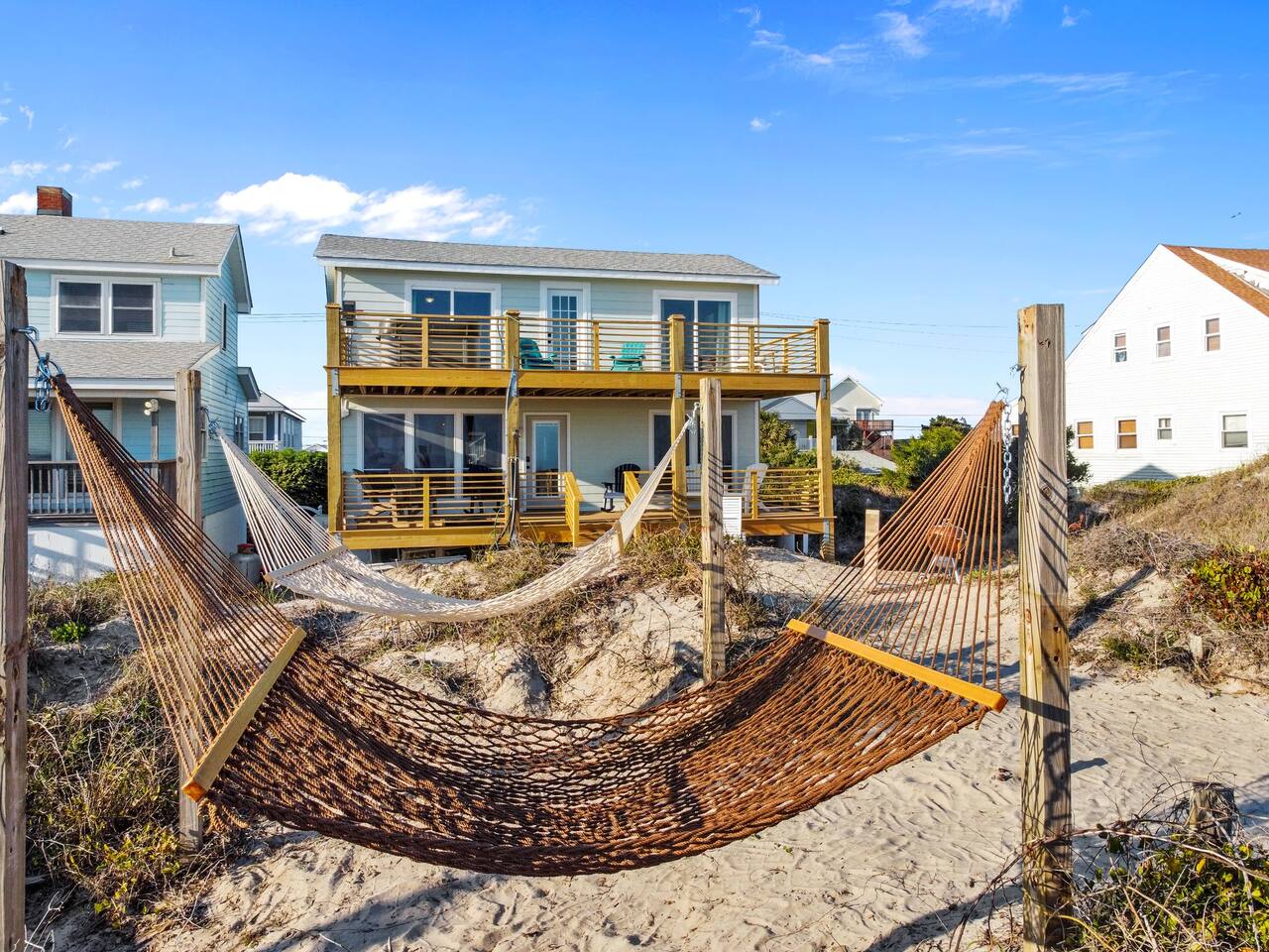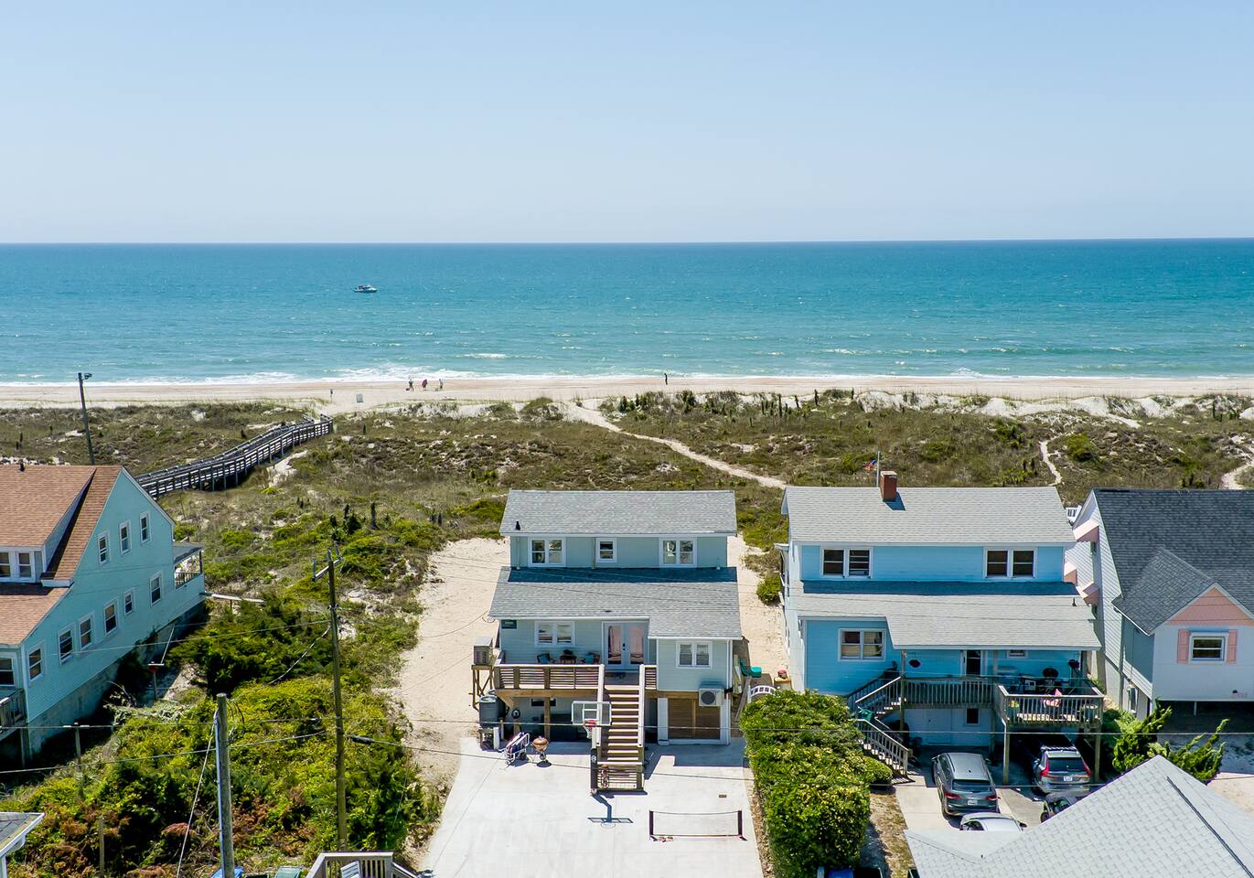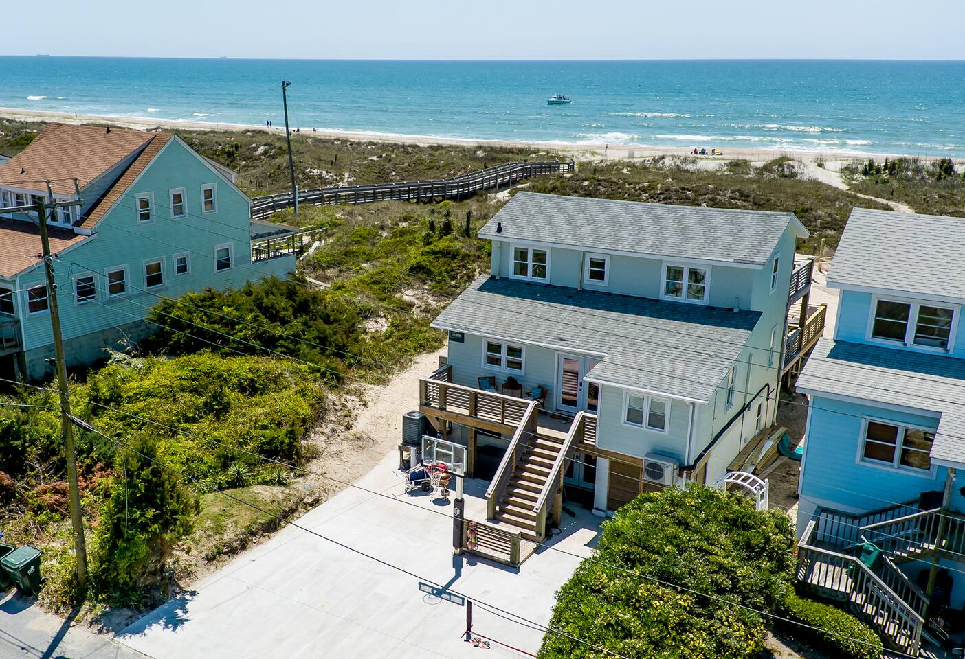 Oceanfront cottage is in a perfect location walking distance to the main attractions (restaurants/nightlife/shopping) of atlantic beach while also being secluded for privacy. Empty lot to the east and older couple to the west. Great mix of owner occupant and family owned properties on the dead end street providing very limited traffic on the street. We are near a dozens chef inspired restaurants, shopping, sporting stores, and numerous outdoor activities.