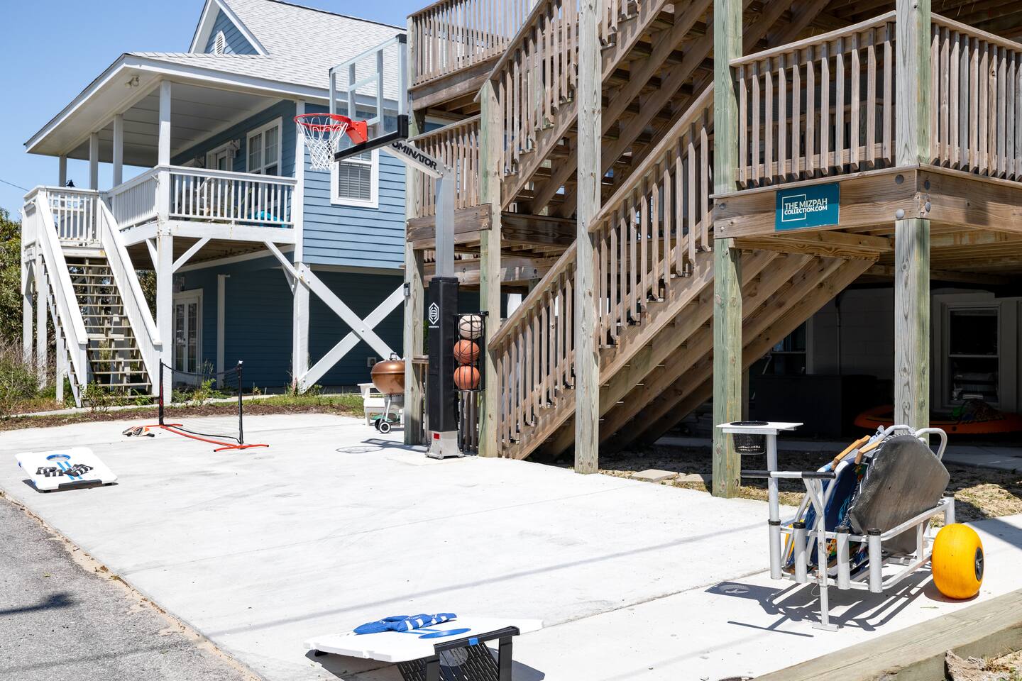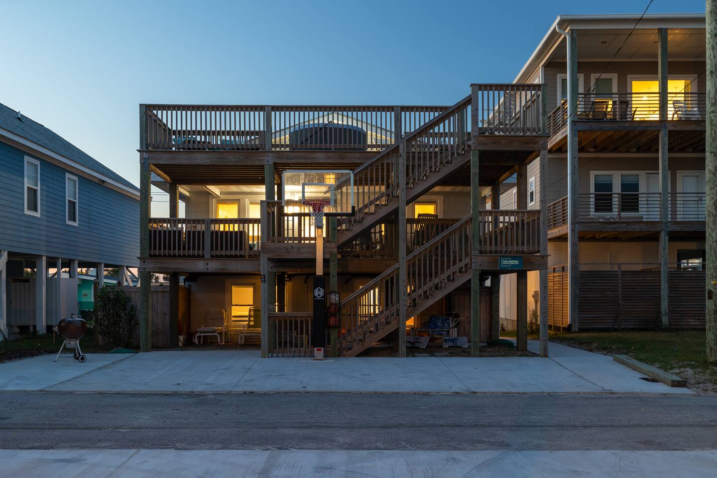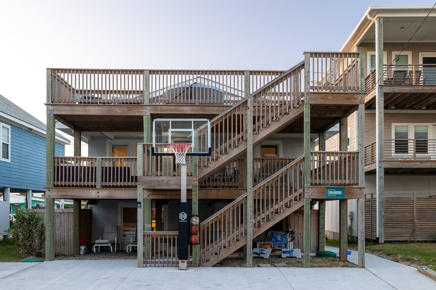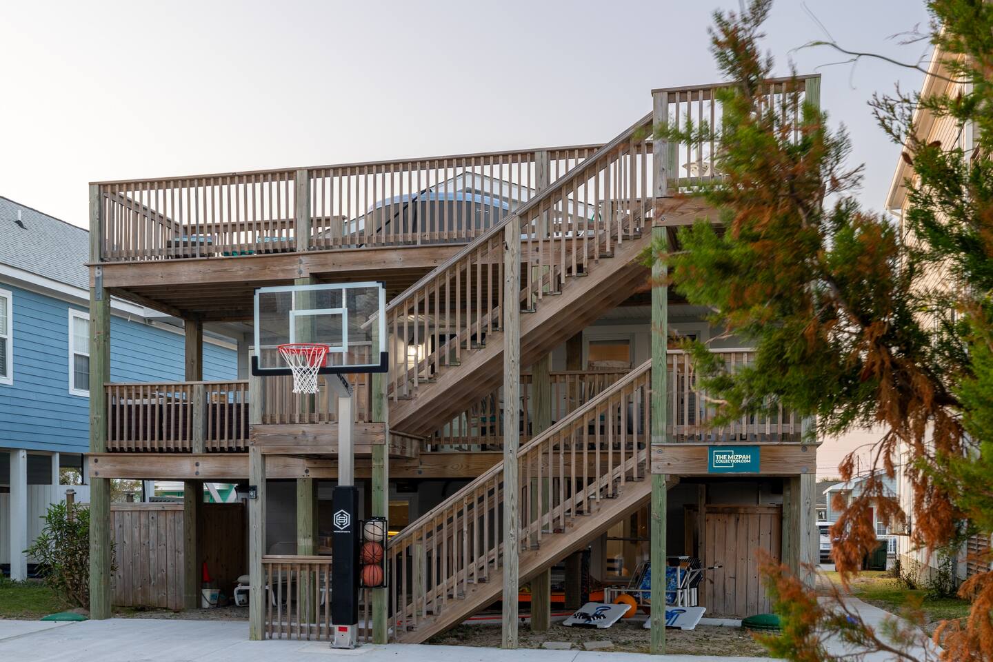 This oceanfront property, part of "The Mizpah Collection," boasts sweeping and breathtaking views with a spacious, open concept design. It's perfect for families or groups looking for a beach getaway, located only 100 feet from beach access. **Bedrooms:** - **Private Queen Bedroom:** With private bath - **Master King Room:** Upstairs - **Two Double Queen Rooms:** Upstairs - **Single Queen Room:** Downstairs - **Downstairs Bedroom:** With both a king and queen bed **Bathrooms:** - **Luxurious Bathrooms:** Fully updated with jacuzzi tub and tile walls downstairs, fully tiled walk-in shower upstairs - **Complimentary Toiletries:** Shampoo, conditioner, and body wash **Living Areas:** - **Open Concept Main Indoor Living Area:** Includes spacious living room, large dining room, and full kitchen - **Two Ocean-Side Balconies/Decks:** Great outdoor seating with ocean views, top deck is an open sun deck, bottom level deck is partly waterproofed **Outdoor Features:** - **Enclosed Outdoor Shower:** Under the deck - **Foot Washing Station:** On the deck - **Ample Parking:** For up to 5 cars **Additional Amenities:** - ( mid-week cleaning available upon request and cleaner availability) - **Climate Control:** Downstairs bedrooms feature mini split heads with individual remote controls, upstairs features central air - **High-Speed Internet:** And smart TVs throughout **Location:** - **Proximity to Dining:** Great restaurants just blocks away in Atlantic Beach, and more options right over the bridge in Morehead City This property is perfect for those looking to experience the ultimate beach vacation in luxury and comfort. Book now and get ready to create unforgettable memories with your loved ones!
