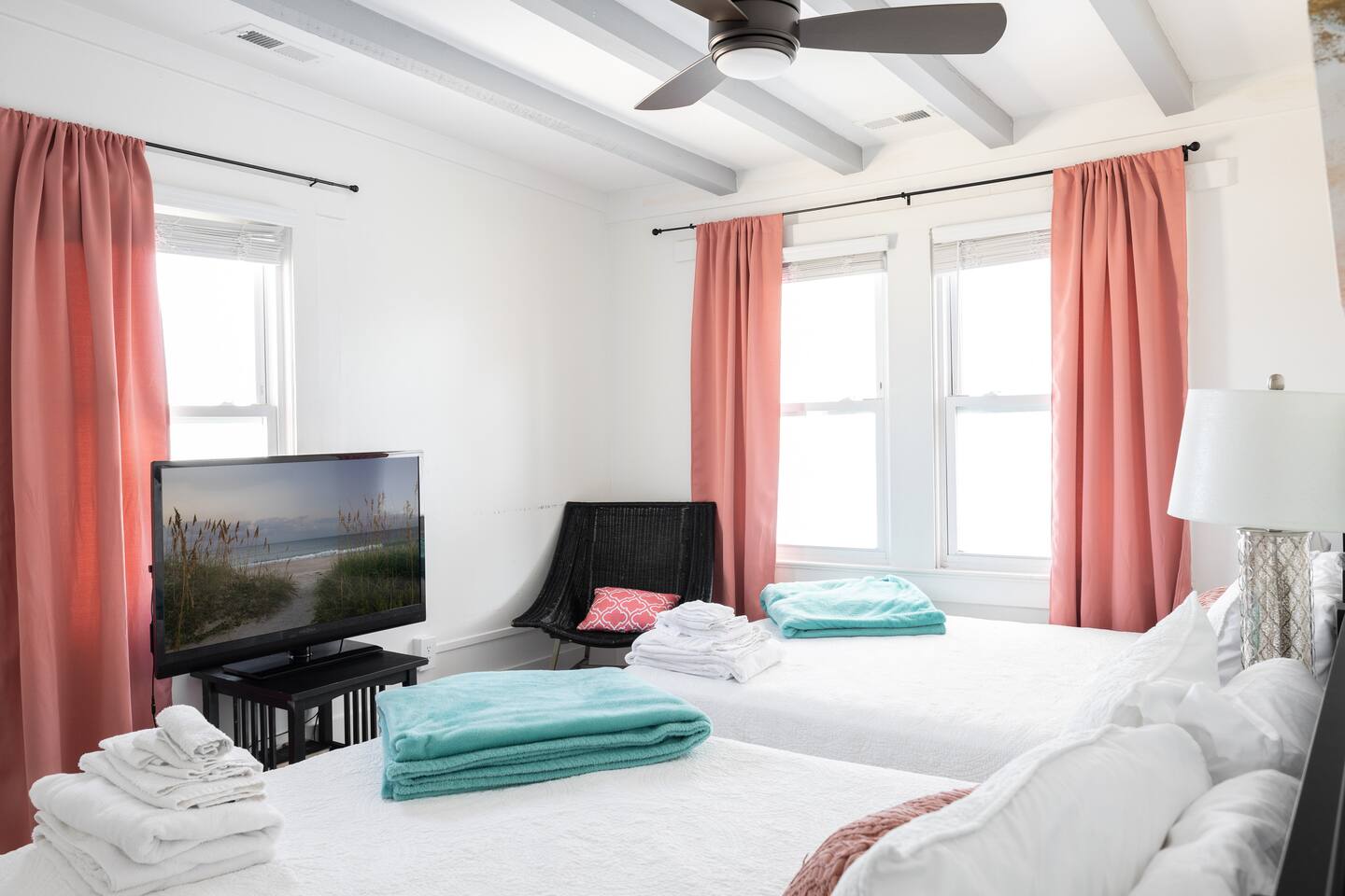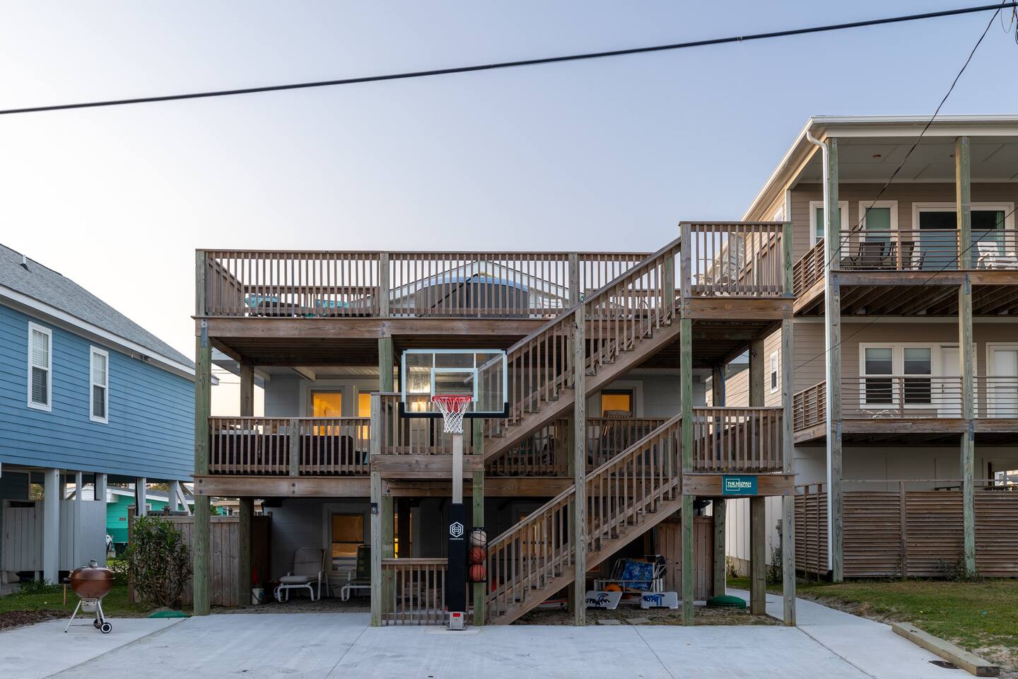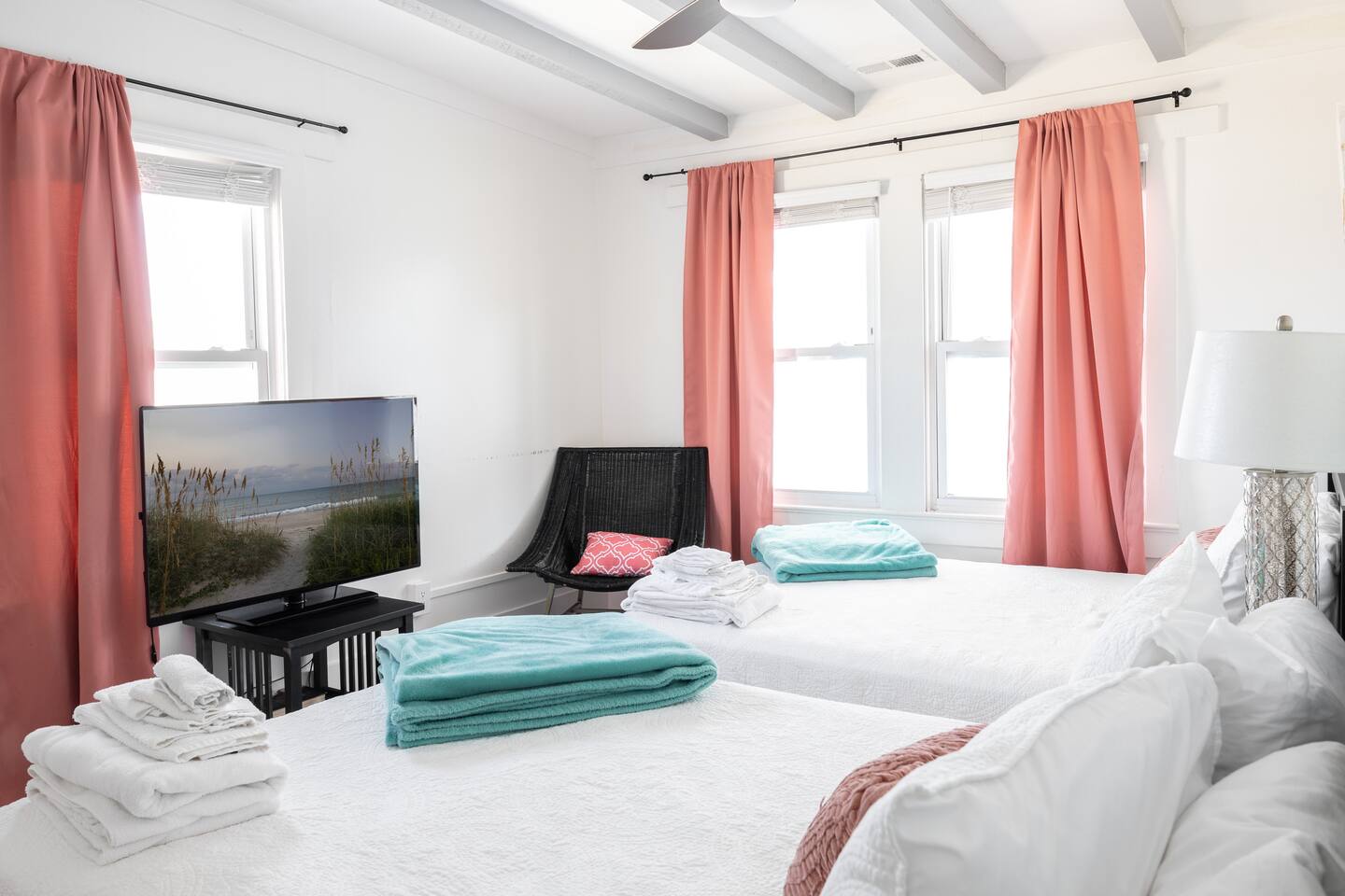 This oceanfront property, part of "The Mizpah Collection," boasts sweeping and breathtaking views with a spacious, open concept design. It's perfect for families or groups looking for a beach getaway, located only 100 feet from beach access. **Bedrooms:** - **Private Queen Bedroom:** With private bath - **Master King Room:** Upstairs - **Two Double Queen Rooms:** Upstairs - **Single Queen Room:** Downstairs - **Downstairs Bedroom:** With both a king and queen bed **Bathrooms:** - **Luxurious Bathrooms:** Fully updated with jacuzzi tub and tile walls downstairs, fully tiled walk-in shower upstairs - **Complimentary Toiletries:** Shampoo, conditioner, and body wash **Living Areas:** - **Open Concept Main Indoor Living Area:** Includes spacious living room, large dining room, and full kitchen - **Two Ocean-Side Balconies/Decks:** Great outdoor seating with ocean views, top deck is an open sun deck, bottom level deck is partly waterproofed **Outdoor Features:** - **Enclosed Outdoor Shower:** Under the deck - **Foot Washing Station:** On the deck - **Ample Parking:** For up to 5 cars **Additional Amenities:** - ( mid-week cleaning available upon request and cleaner availability) - **Climate Control:** Downstairs bedrooms feature mini split heads with individual remote controls, upstairs features central air - **High-Speed Internet:** And smart TVs throughout **Location:** - **Proximity to Dining:** Great restaurants just blocks away in Atlantic Beach, and more options right over the bridge in Morehead City This property is perfect for those looking to experience the ultimate beach vacation in luxury and comfort. Book now and get ready to create unforgettable memories with your loved ones!