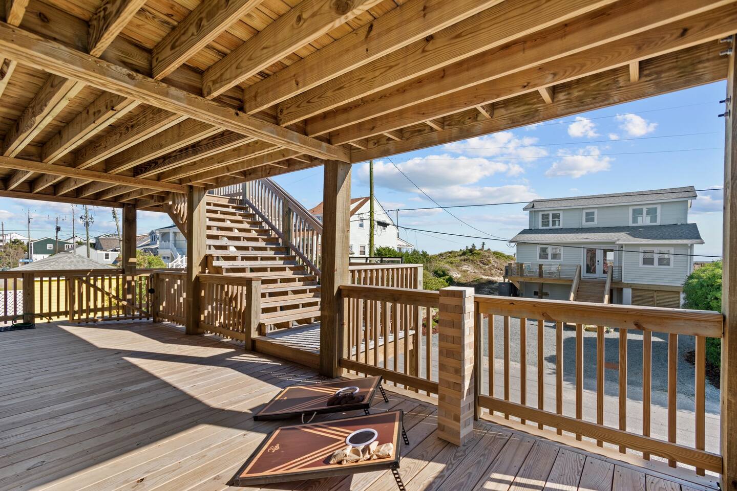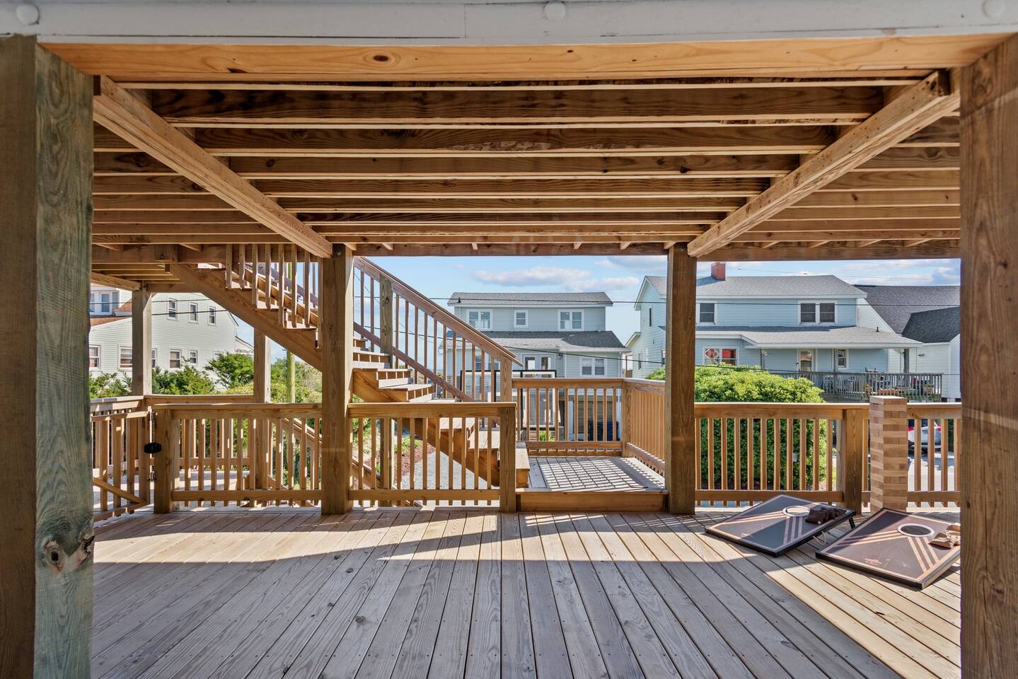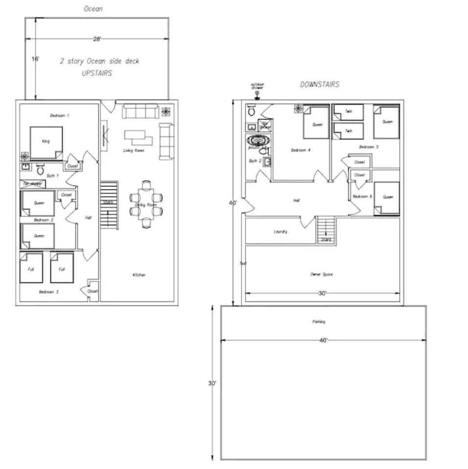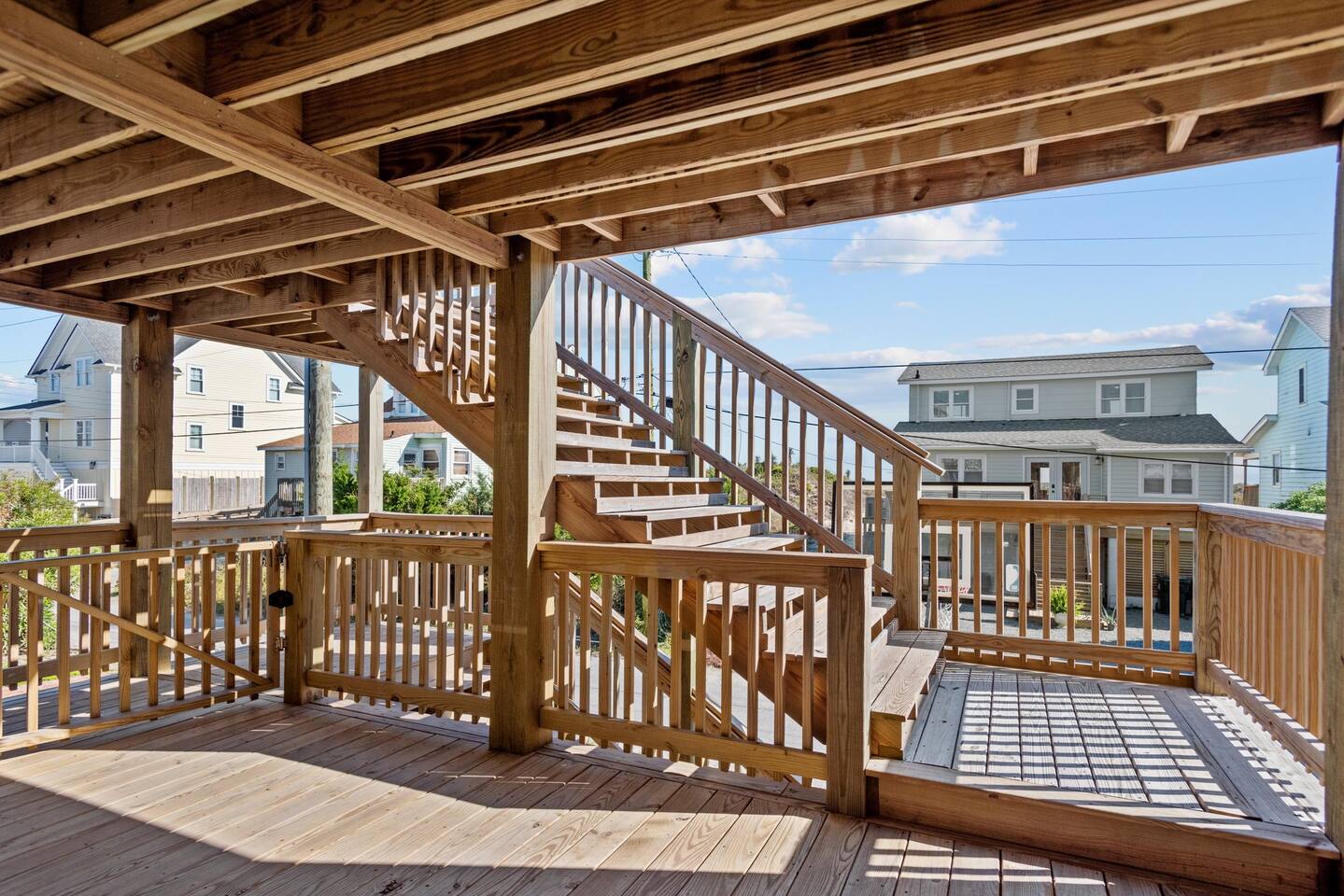 This oceanfront property, part of "The Mizpah Collection," boasts sweeping and breathtaking views with a spacious, open concept design. It's perfect for families or groups looking for a beach getaway, located only 100 feet from beach access. **Bedrooms:** - **Private Queen Bedroom:** With private bath - **Master King Room:** Upstairs - **Two Double Queen Rooms:** Upstairs - **Single Queen Room:** Downstairs - **Downstairs Bedroom:** With both a king and queen bed **Bathrooms:** - **Luxurious Bathrooms:** Fully updated with jacuzzi tub and tile walls downstairs, fully tiled walk-in shower upstairs - **Complimentary Toiletries:** Shampoo, conditioner, and body wash **Living Areas:** - **Open Concept Main Indoor Living Area:** Includes spacious living room, large dining room, and full kitchen - **Two Ocean-Side Balconies/Decks:** Great outdoor seating with ocean views, top deck is an open sun deck, bottom level deck is partly waterproofed **Outdoor Features:** - **Enclosed Outdoor Shower:** Under the deck - **Foot Washing Station:** On the deck - **Ample Parking:** For up to 5 cars **Additional Amenities:** - ( mid-week cleaning available upon request and cleaner availability) - **Climate Control:** Downstairs bedrooms feature mini split heads with individual remote controls, upstairs features central air - **High-Speed Internet:** And smart TVs throughout **Location:** - **Proximity to Dining:** Great restaurants just blocks away in Atlantic Beach, and more options right over the bridge in Morehead City This property is perfect for those looking to experience the ultimate beach vacation in luxury and comfort. Book now and get ready to create unforgettable memories with your loved ones!